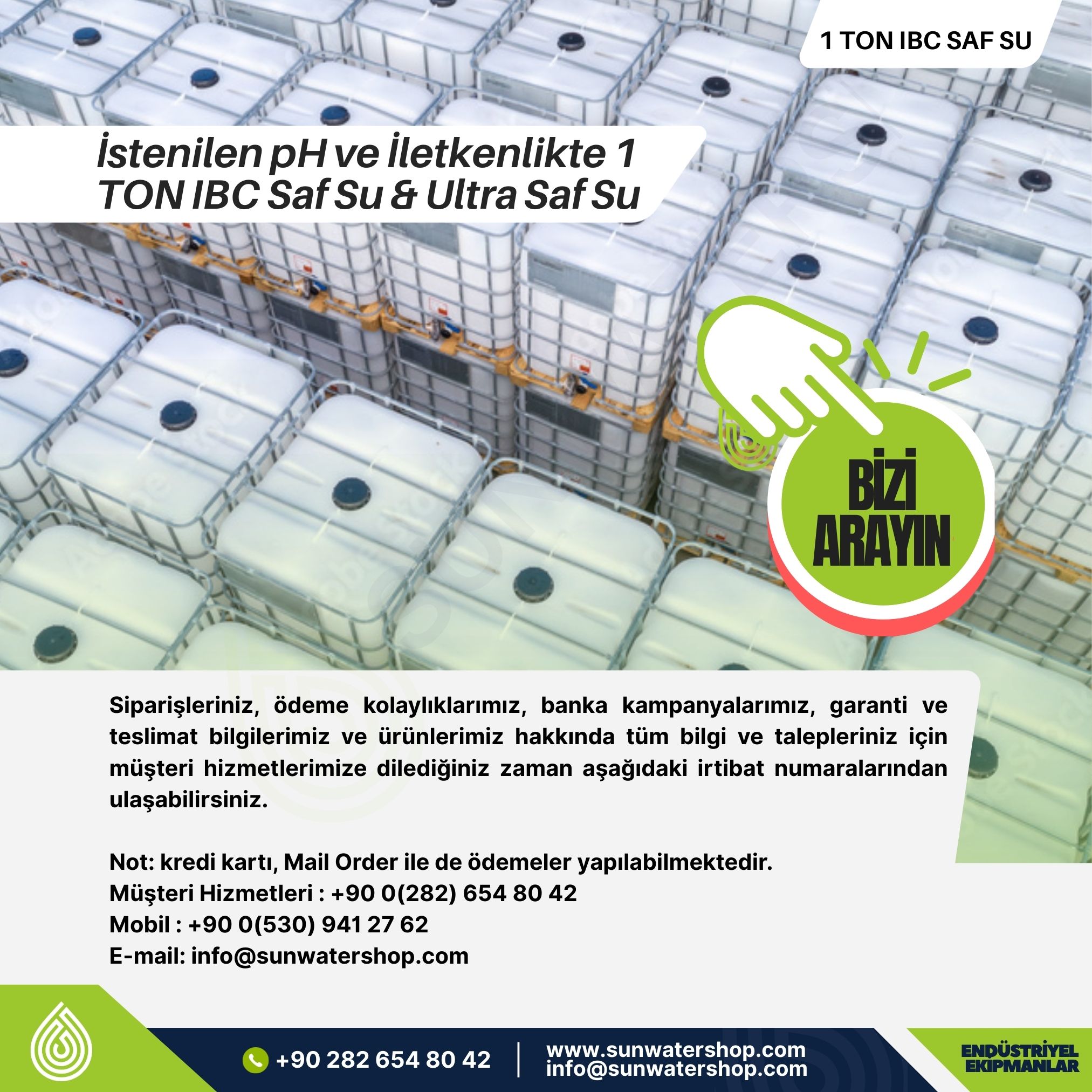 1 Ton IBC Saf Su & Ultra Saf Su Üretimi | İstenilen pH ve İletkenlikte 1 Ton IBC SafSu & Ultra Saf Su Üretimi | 1 Ton IBC İstenilen pH ve İletkenlikte Saf Su & Yumuşak Su & Filtre Edilmiş Ham Su & Ultra Saf Su 1 Ton IBC Dolumu isimli ürün ile alakalı tarafınıza teklif verebilmemiz için aşağıdaki formu eksiksiz olarak doldurunuz. Bilgilerinizin bize ulaşmasının ardından en kısa sürede teklifimizi tarafınıza ileteceğiz.