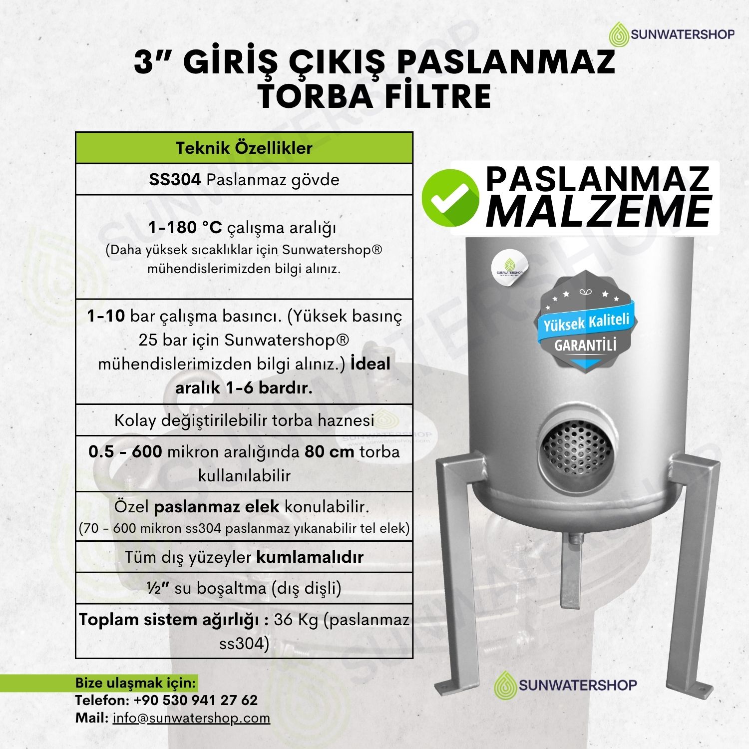 Standart dişli bağlantı (DN80) (Flanş bağlantısı için ) Sunwatershop® mühendislerimizden bilgi alınız.) |