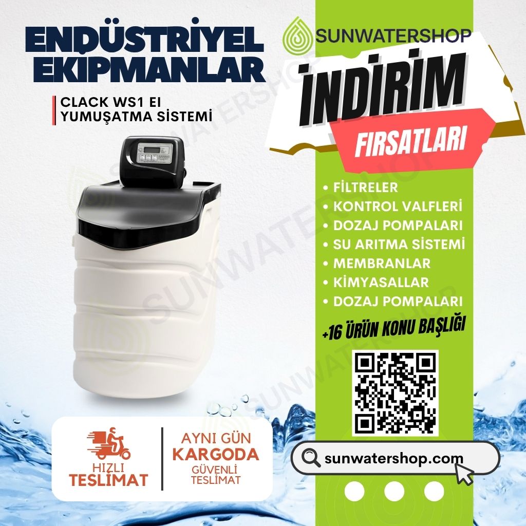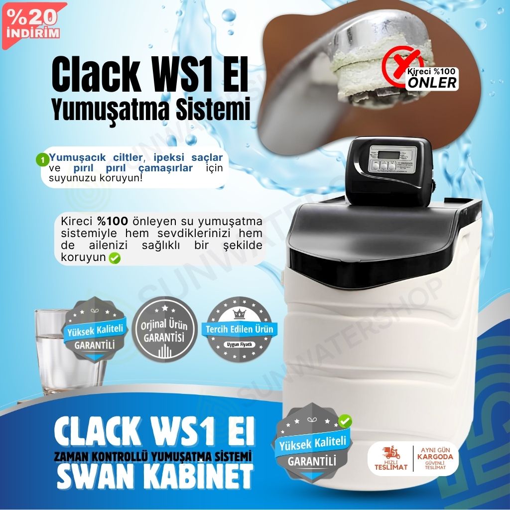Clack WS1 EI (SWAN KABİNET) Debi Kontrollü Yumuşatma Sistemi, evlerdeki kireç problemlerini tamamen ortadan kaldırmak için tasarlanmış bir su yumuşatma cihazıdır. Her su sertliğine ve arıtılacak su kapasitesine uygun olarak reçine miktarı ayarlanabilir. Bu özellik, cihazı farklı ihtiyaçlara göre esnek bir çözüm haline getirir. Ayrıca, verimli ve uzun ömürlü çalışmasıyla dikkat çeken Clack WS1 EI (SWAN KABİNET) Debi Kontrollü Yumuşatma Sistemi sistemi, evlerinizde su kaynaklı sorunları minimuma indirmeye yardımcı olur. Clack WS1 EI (SWAN KABİNET) Debi Kontrollü Yumuşatma Sistemi