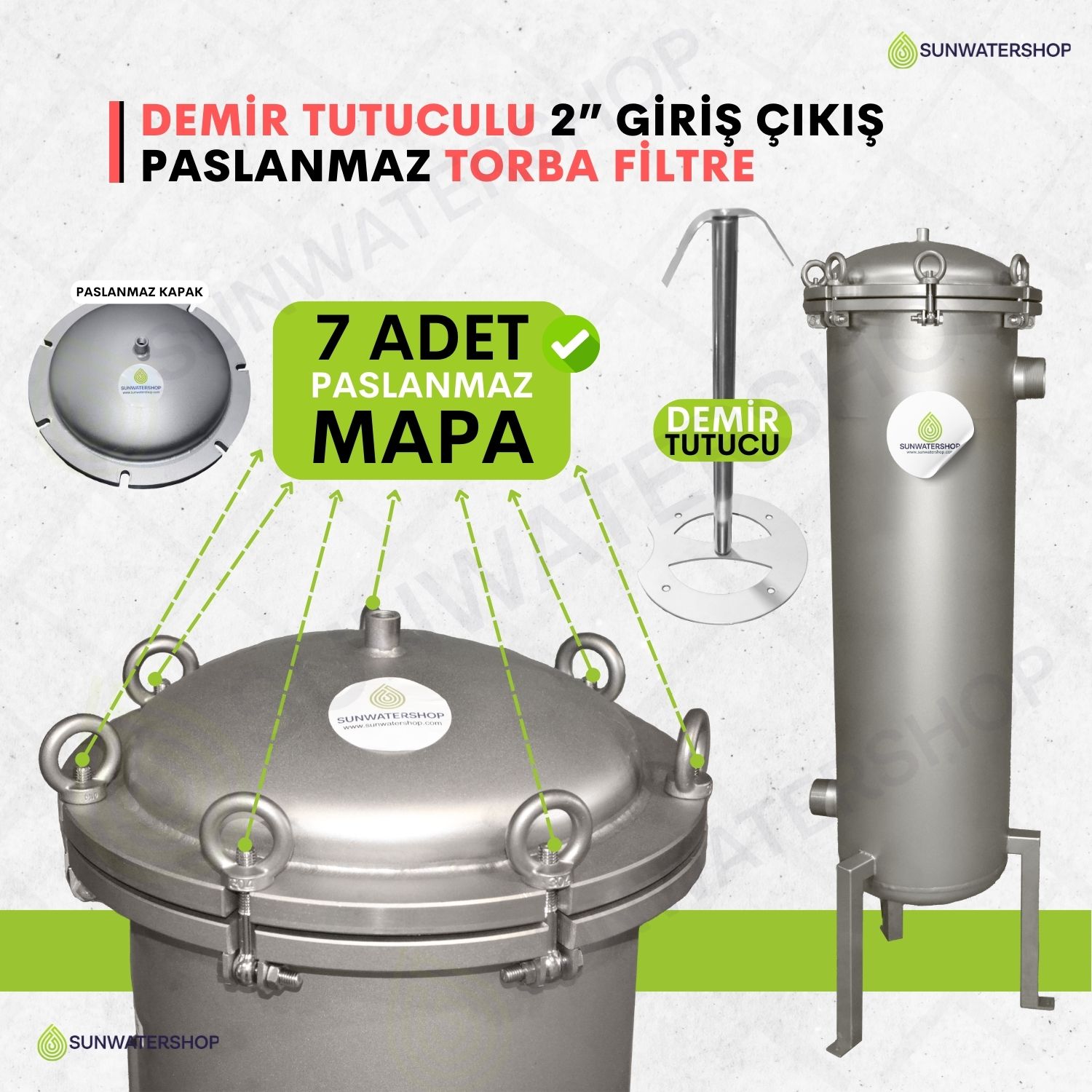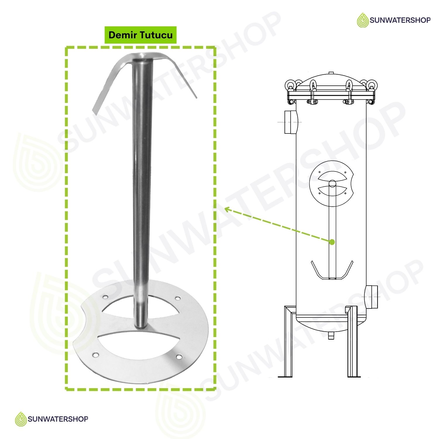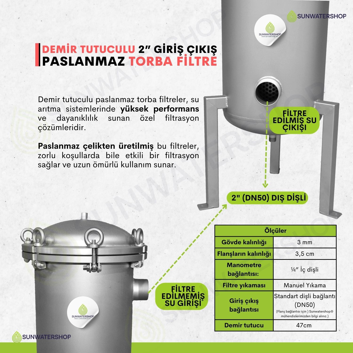 Standart dişli bağlantı (DN50) (Flanş bağlantısı için ) Sunwatershop® mühendislerimizden bilgi alınız.) |
