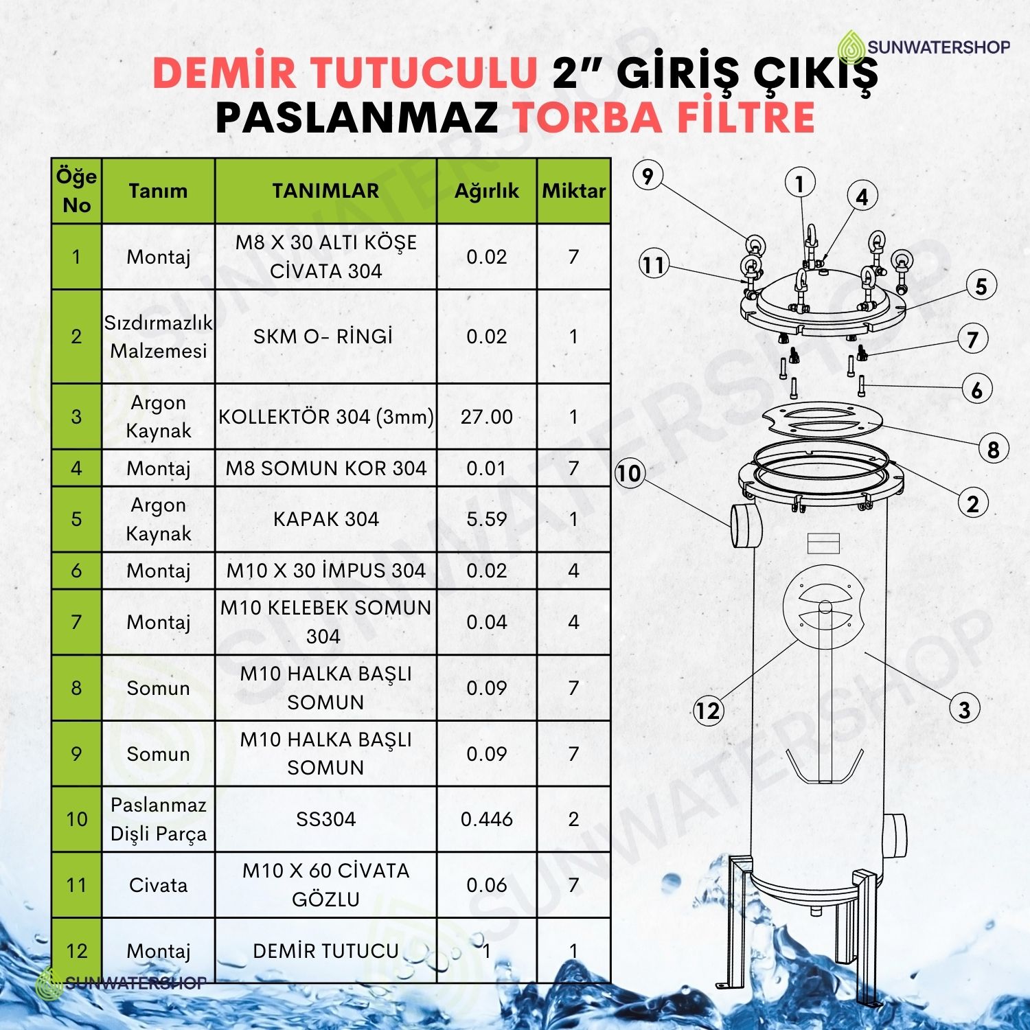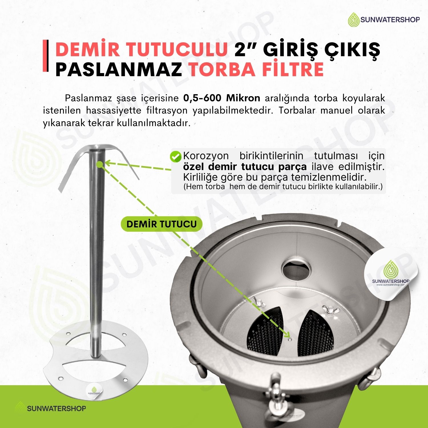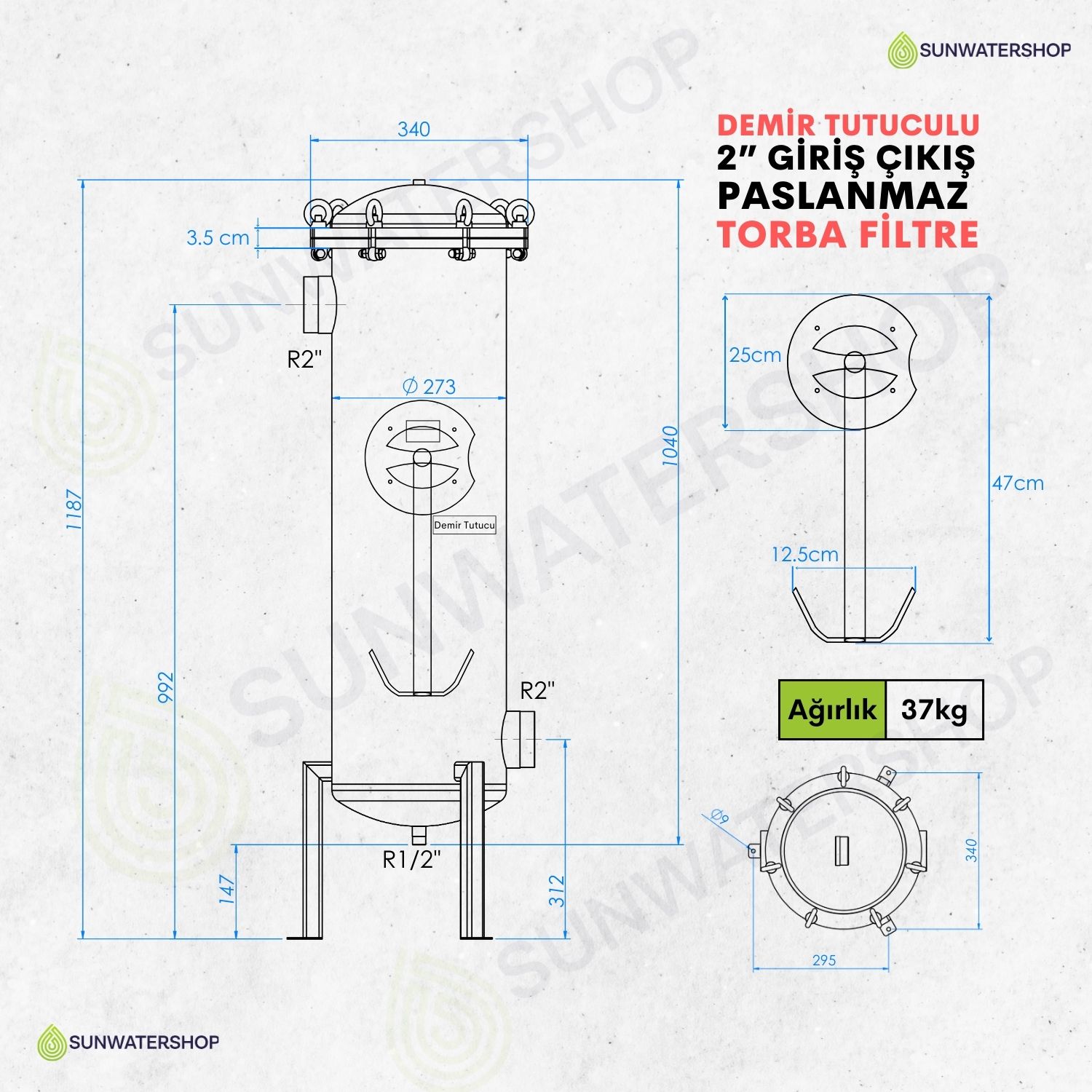 Standart dişli bağlantı (DN50) (Flanş bağlantısı için ) Sunwatershop® mühendislerimizden bilgi alınız.) |