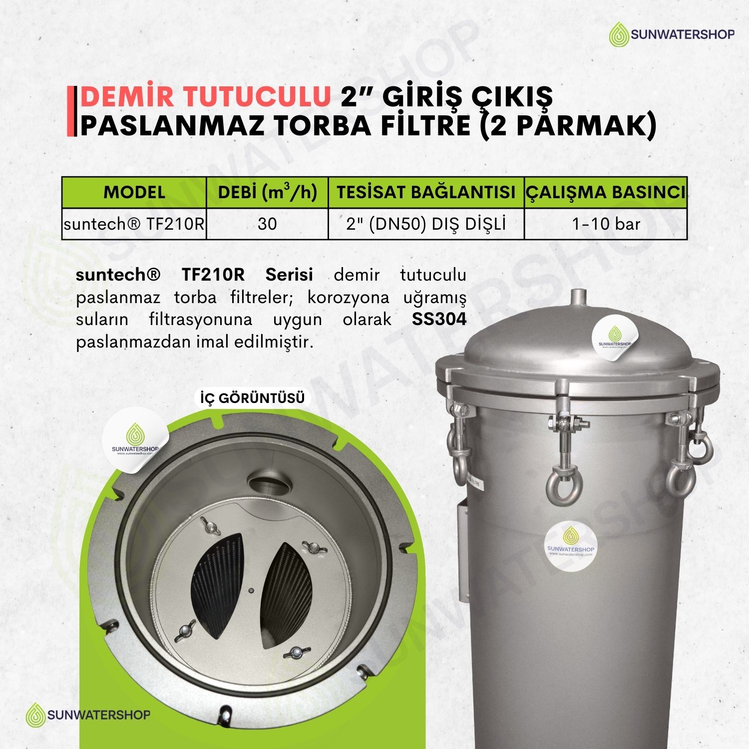 | suntech® TF210R | 30 | 2" (DN50) DIŞ DİŞLİ | 1-10 bar |