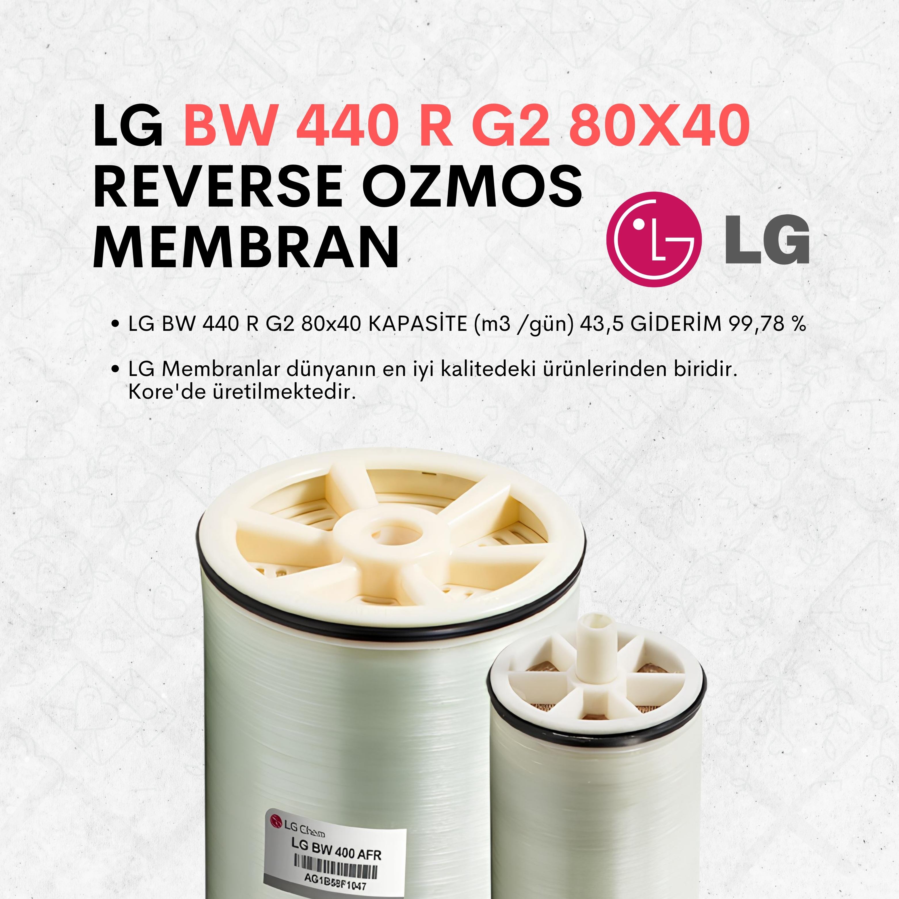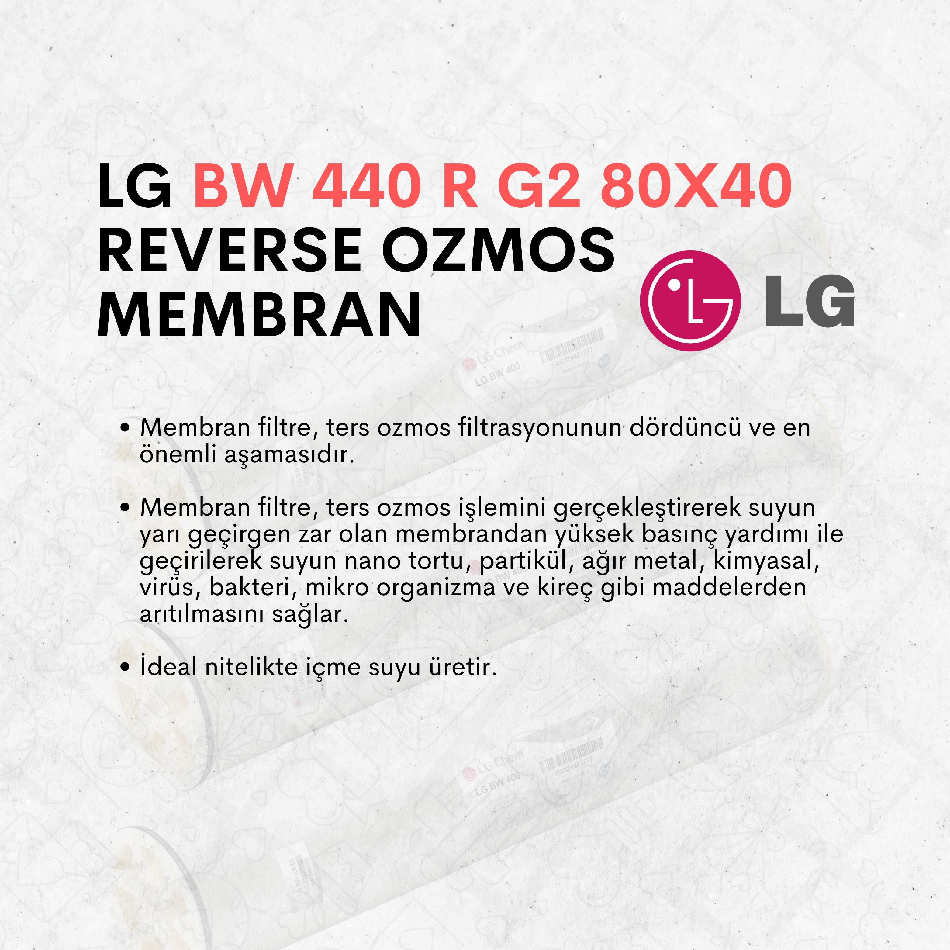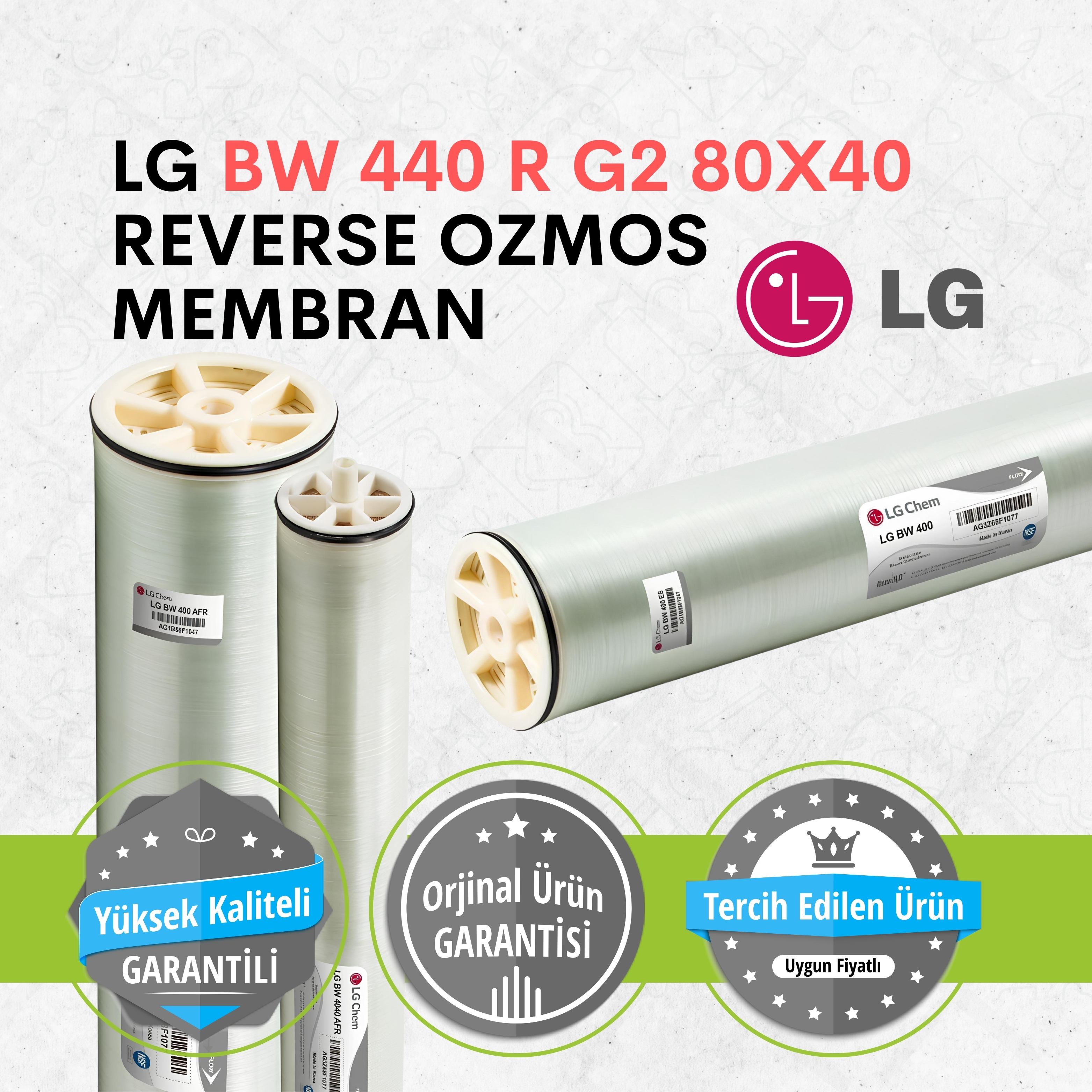 LG'nin Reverse Osmosis (RO) membranları, su arıtma sistemlerinde kullanılan ileri teknolojiye sahip, yüksek performanslı ve güvenilir membranlardır. Su arıtma alanında dünya çapında tanınan LG, bu membranları geliştirmede yenilikçi malzemeler ve mühendislik çözümleri kullanarak, kullanıcılarına uzun ömürlü ve etkili bir ürün sunmaktadır. LG RO membranları, genellikle çeşitli su kaynaklarını (tuzlu su, deniz suyu veya düşük kaliteli yüzey suları) yüksek verimle saf suya dönüştürmek amacıyla tasarlanmıştır.