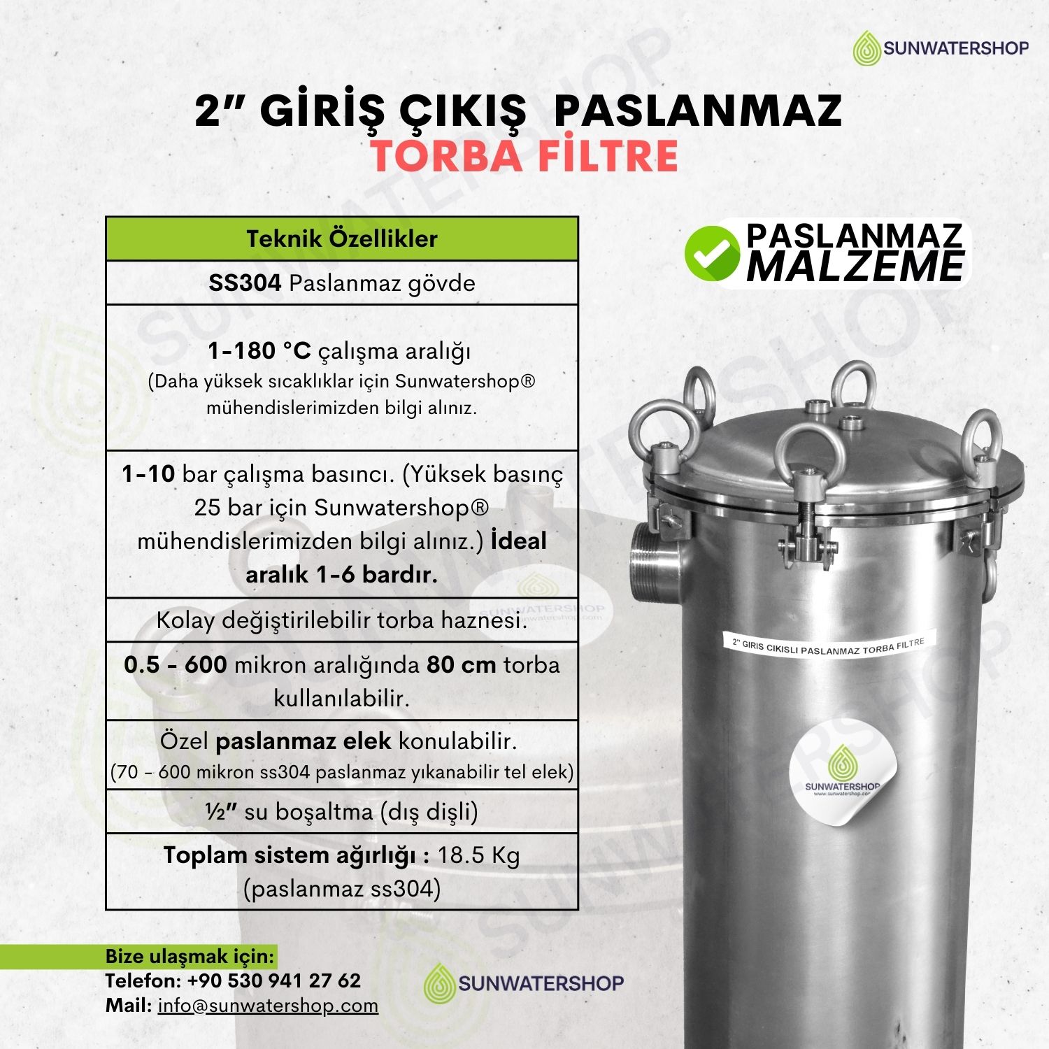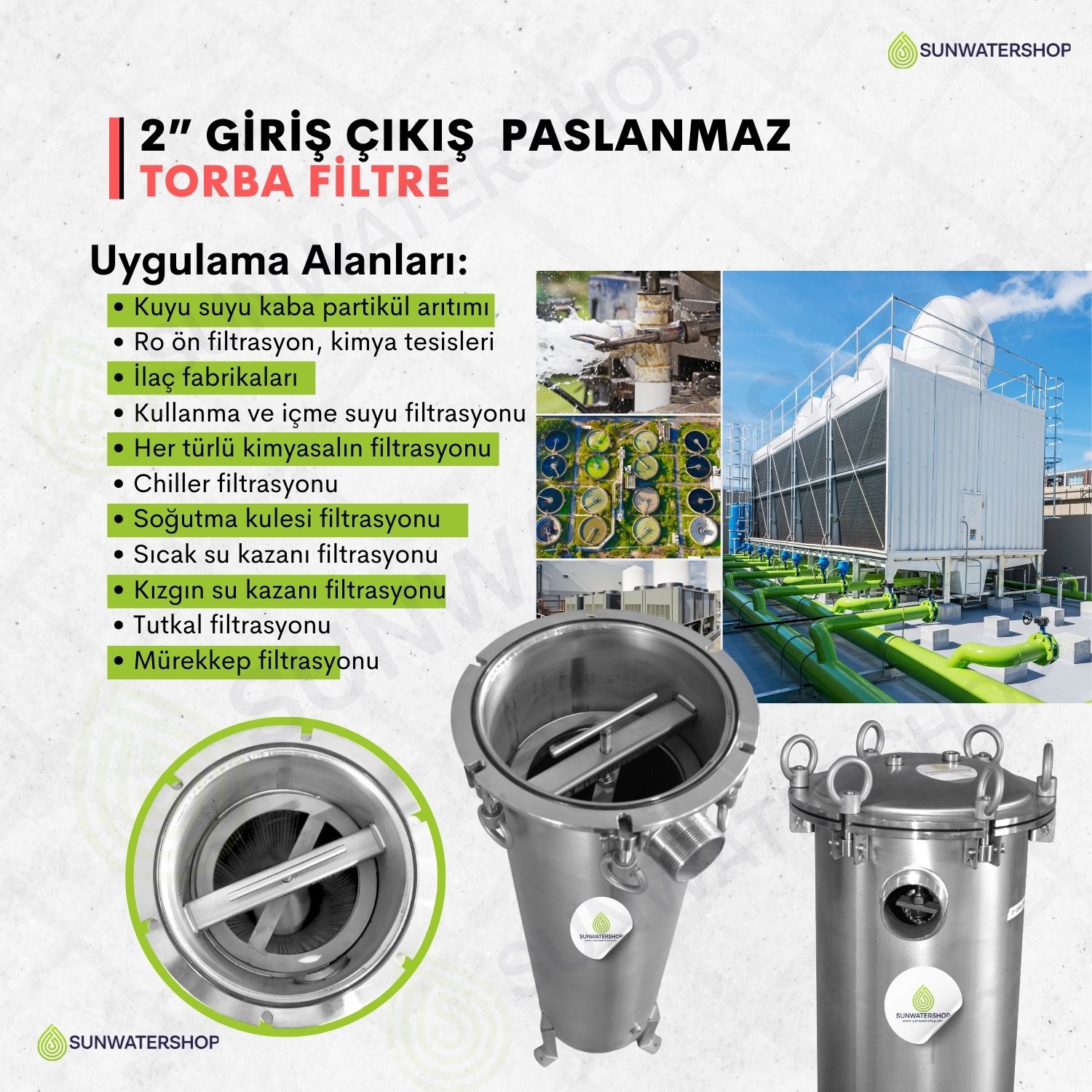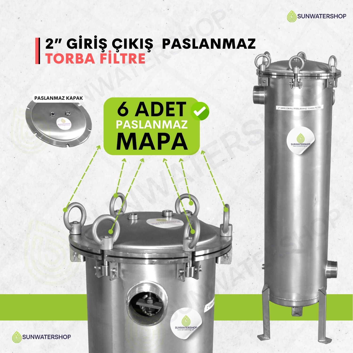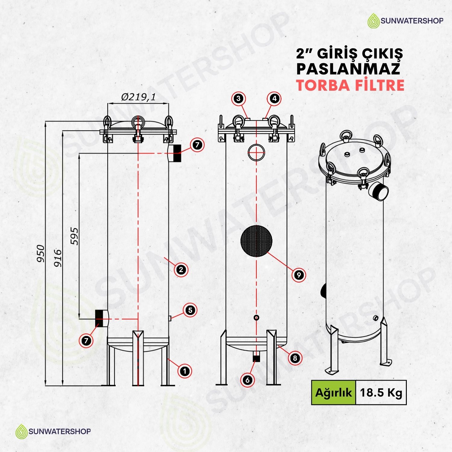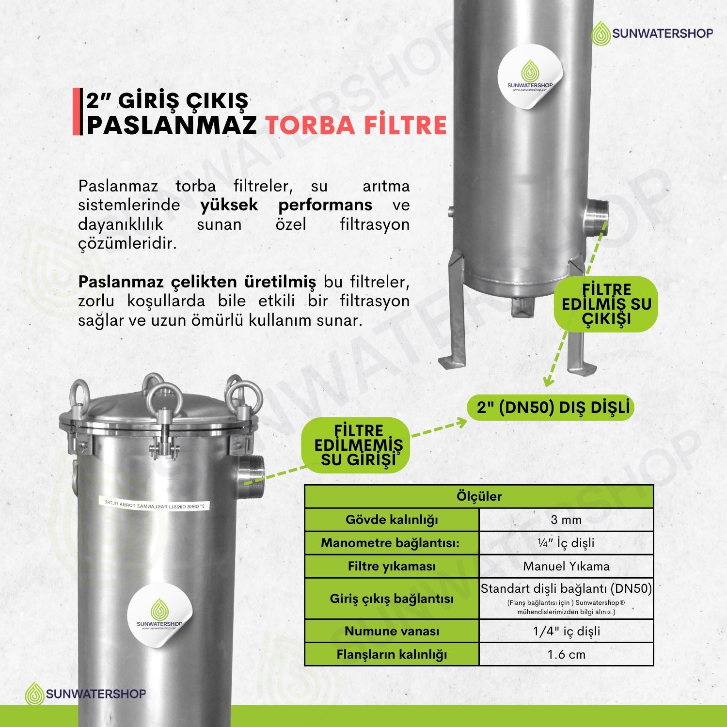 Standart dişli bağlantı (DN50) (Flanş bağlantısı için ) Sunwatershop® mühendislerimizden bilgi alınız.) |