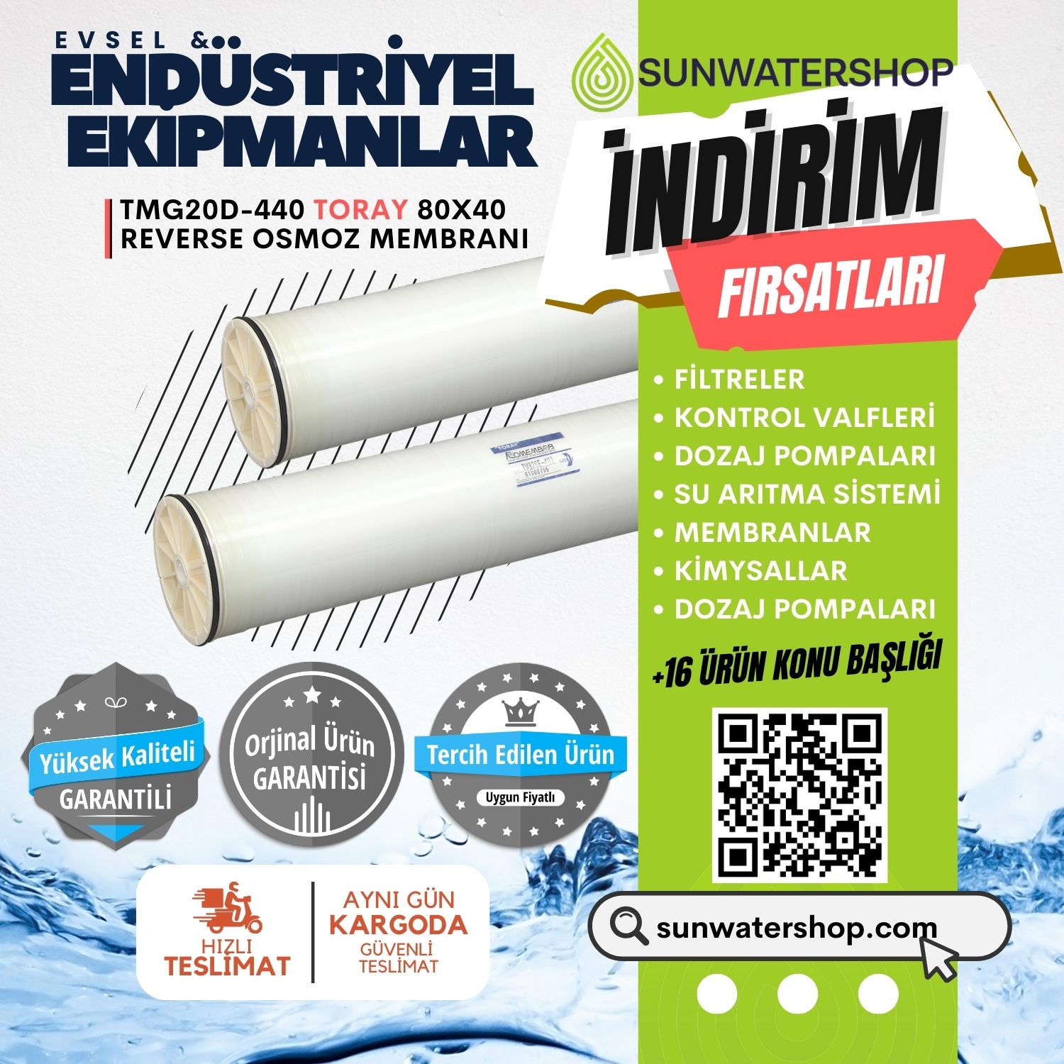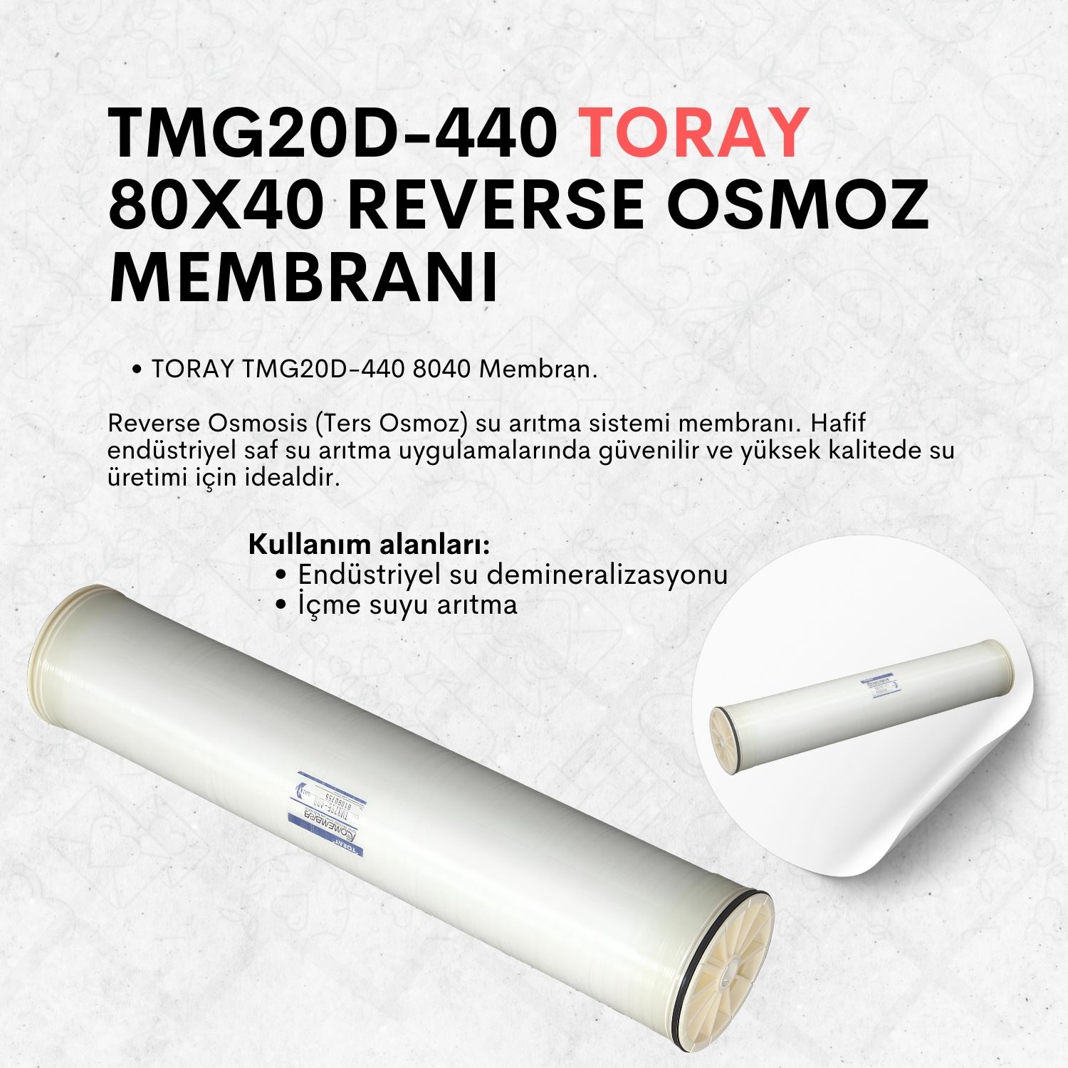 Reverse Osmosis (Ters Osmoz) su arıtma sistemi membranı. Hafif endüstriyel saf su arıtma uygulamalarında güvenilir ve yüksek kalitede su üretimi için idealdir.